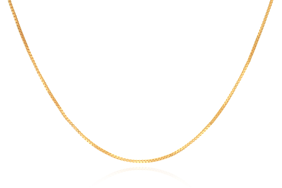 CORRENTE BANHADA EM OURO, ELO VENEZIANA 0,60mm, 40cm COMPRIMENTO, EXTENSOR 5cm COMPRIMENTO E PESO 1,50g