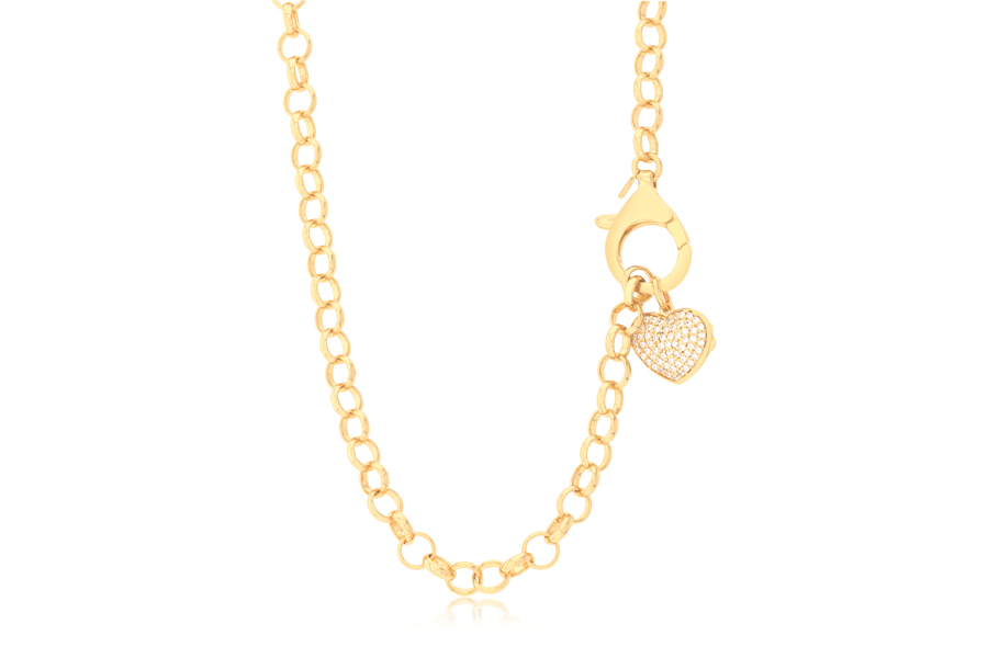 GARGANTILHA BANHADA EM OURO, ELO RABO DE RATO 1mm, 40cm COMPRIMENTO, EXTENSOR 5cm COMPRIMENTO E CORAÇÃO 27mm LARGURA