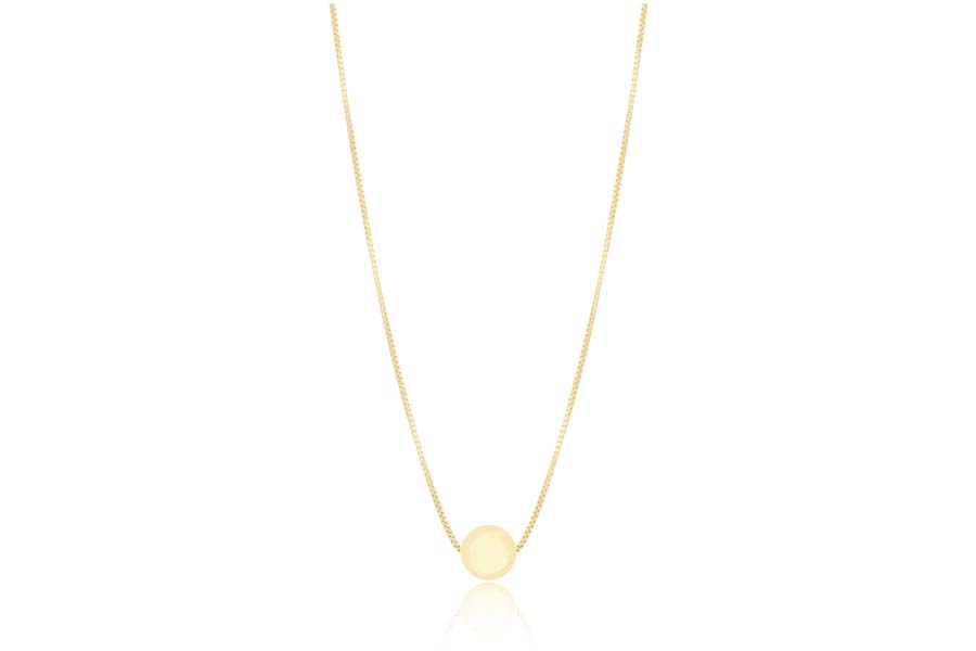 GARGANTILHA BANHADA EM OURO, VENEZIANA 0,80mm, BOLINHA 2,50mm, 45cm COMPRIMENTO E RELICÁRIO REDONDO 21mm DIÂMETRO