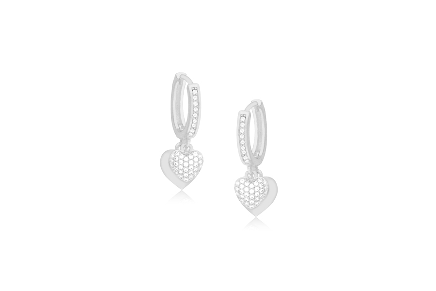 BRINCO EM PRATA, CORAÇÃO 10mm LARGURA, COM BANHO DE RÓDIO BRANCO, COLEÇÃO AURA