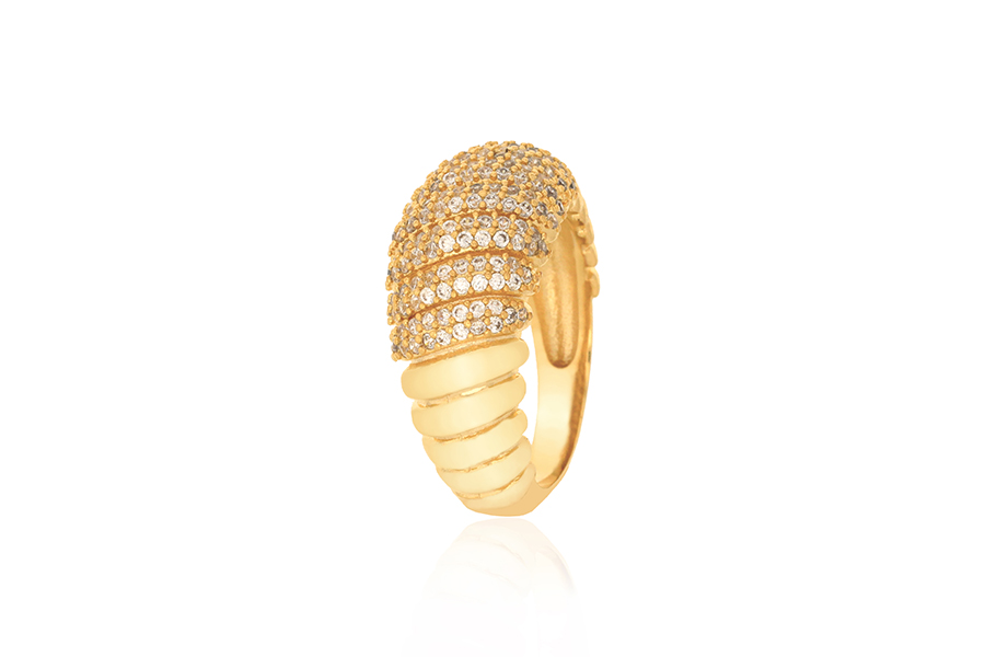 ANEL BANHADO EM OURO, SOLITÁRIO 5mm COM 22 ZIRCÔNIAS