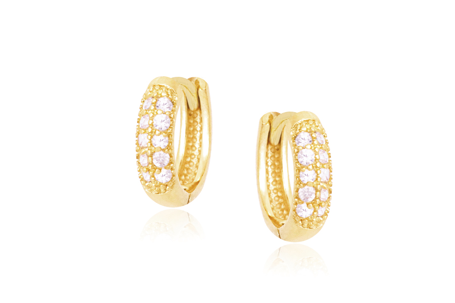BRINCO BANHADO EM OURO, ARGOLA 20mm DIÂMETRO, 3mm LARGURA COM 16 ZIRCÔNIAS