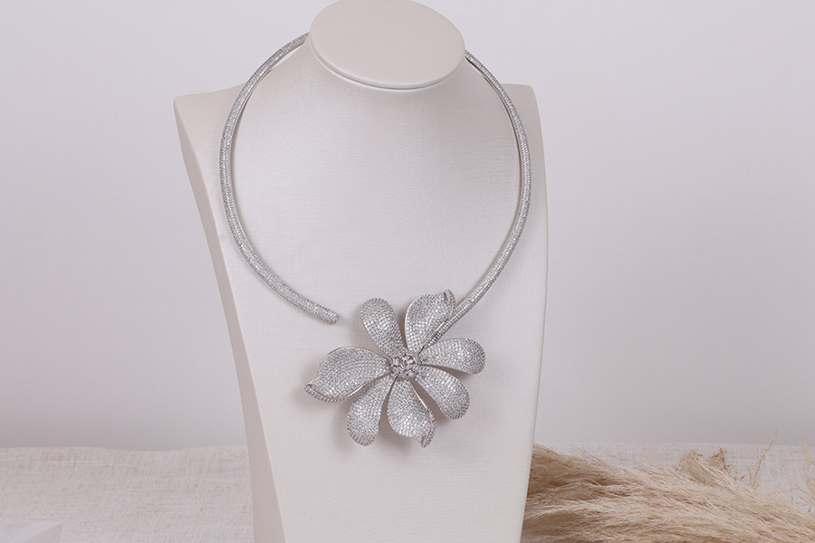 GARGANTILHA BANHADA EM RÓDIO BRANCO, GRAVATA, ELO PORTUGUÊS 3mm DIÂMETRO, PALITO 17mm COMPRIMENTO E CORAÇÃO 13mm LARGURA