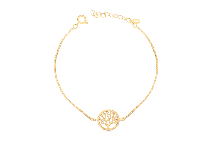 PULSEIRA BANHADA EM RÓDIO BRANCO, INFANTIL, ELO PORTUGUÊS 2,50mm, 14cm COMPRIMENTO, EXTENSOR 3cm COMPRIMENTO E ÁRVORE DA VIDA 17mm DIÂMETRO