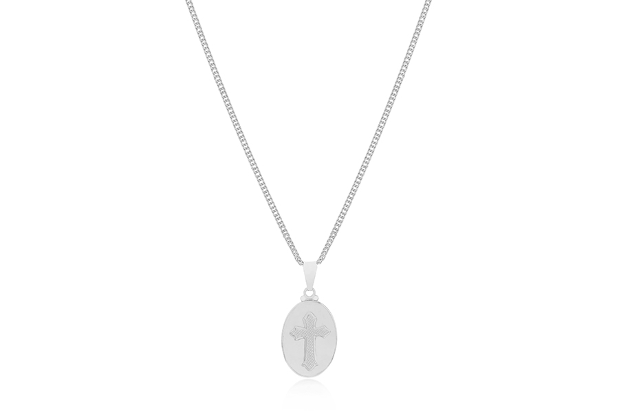 GARGANTILHA BANHADA EM OURO, ELO 2,30mm LARGURA, 60cm COMPRIMENTO E CRUZ 25mm ALTURA, 16mm LARGURA