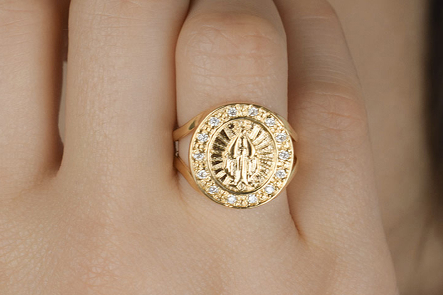 ANEL BANHADO EM OURO, REDONDO CRAVEJADO 17mm