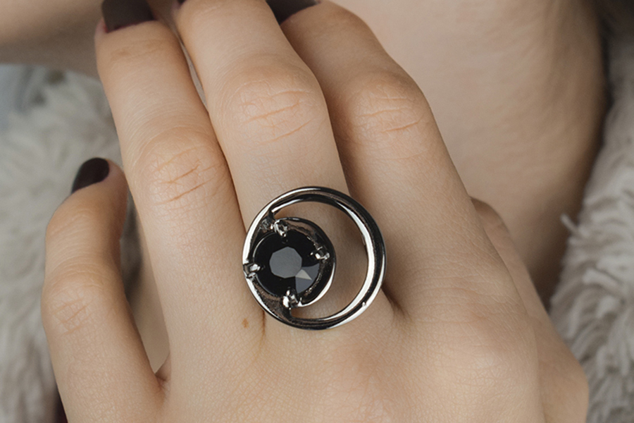 ANEL BANHADO EM RÓDIO BRANCO, SOLITÁRIO 9mm, LINHA TRADICIONAL
