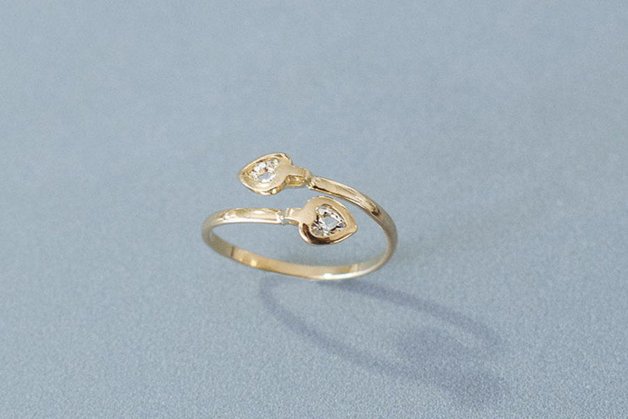 ANEL BANHADO EM OURO, ALIANÇA GATO E CORAÇÃO COM ZIRCÔNIA