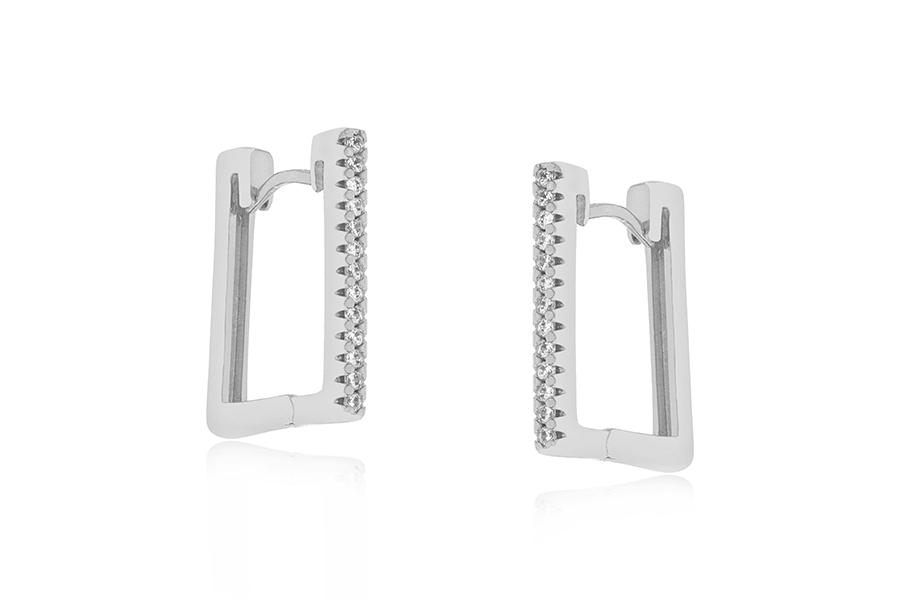 BRINCO BANHADO EM PRATA LEVE, 5mm DIÂMETRO COM 4 ZIRCÔNIAS, COLEÇÃO ÍCONES
