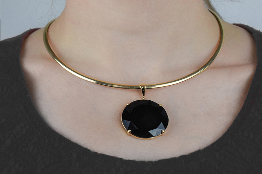 PINGENTE BANHADO EM OURO, CRISTAL REDONDO 26mm, BIOMEDICINA