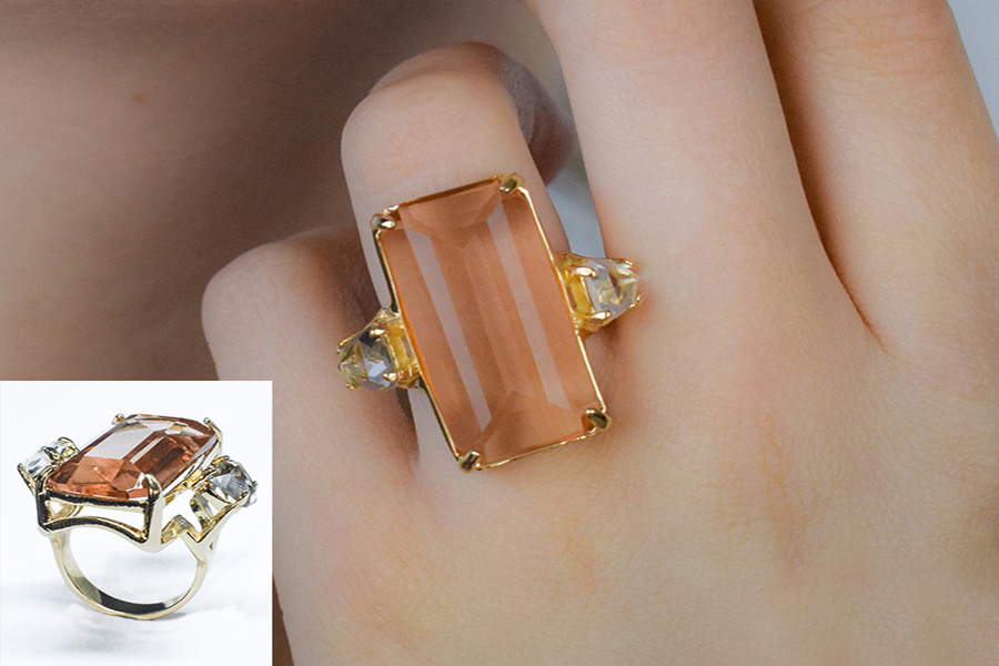 ANEL BANHADO EM OURO, CRISTAL GOTA 26X21mm