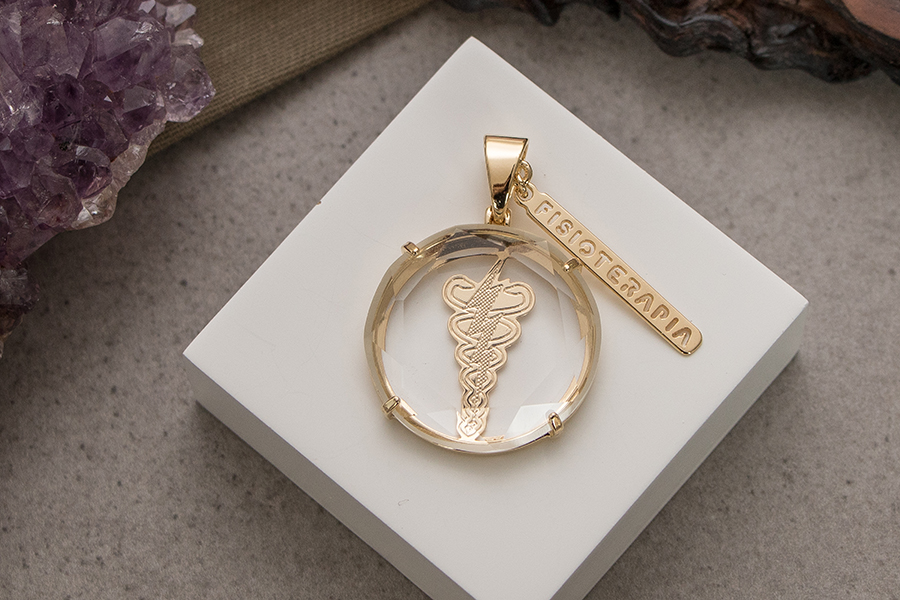 PINGENTE BANHADO EM OURO CRISTAL 16mm DIÂMETRO, BONECOS