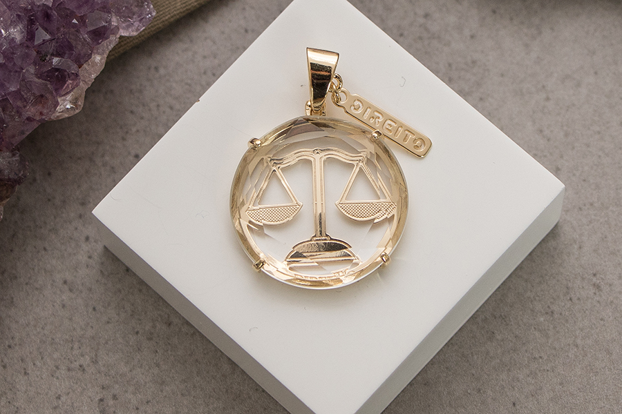 PINGENTE BANHADO EM OURO, CRISTAL REDONDO 26mm, VETERINÁRIA