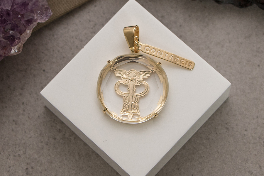 PINGENTE BANHADO EM OURO, MADREPÉROLA 22mm DIÂMETRO, SÃO BENTO