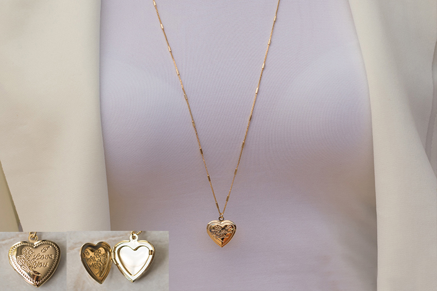 GARGANTILHA BANHADA EM OURO, CRISTAL CORAÇÃO 15mm LARGURA E CORRENTE ELO 4mm LARGURA, 40cm COMPRIMENTO