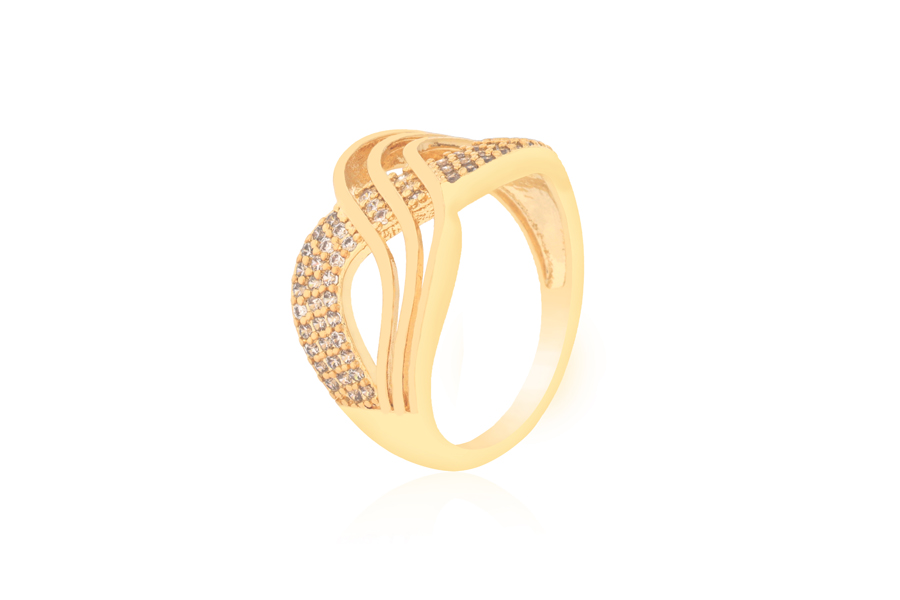 ANEL BANHADO EM OURO, SOLITÁRIO 8mm, COM 173 ZIRCÔNIAS