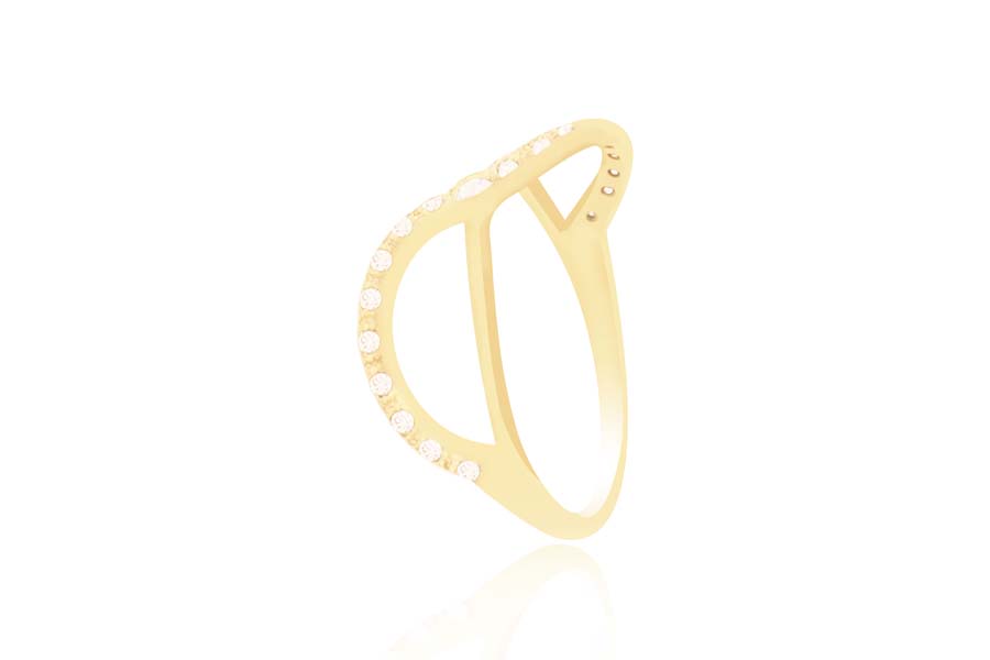 ANEL BANHADO EM OURO, SOLITÁRIO 5mm COM 22 ZIRCÔNIAS