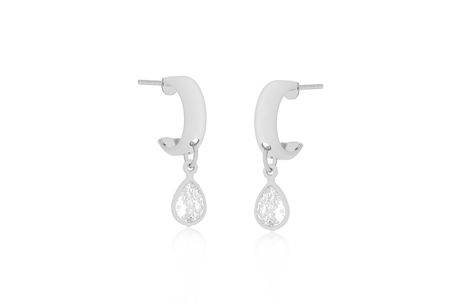 BRINCO BANHADO EM RÓDIO BRANCO, CRISTAL GOTA, 11,20mm ALTURA