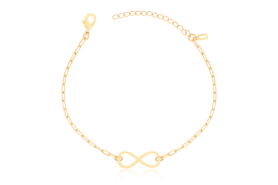 PULSEIRA BANHADA EM OURO, ELO PORTUGUÊS 2,50mm DIÂMETRO, 16cm COMPRIMENTO E INFINITO 25mm LARGURA