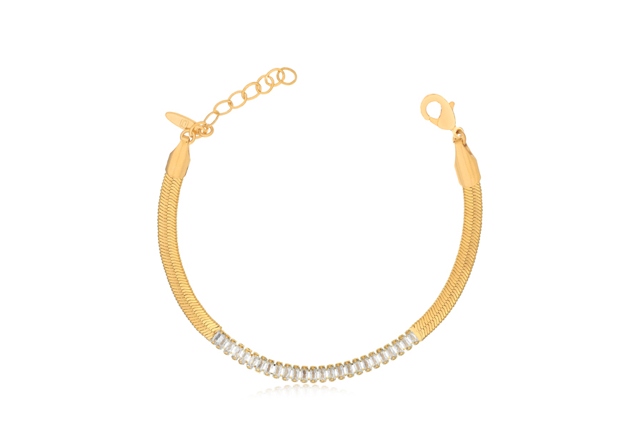 PULSEIRA BANHADA EM OURO, CRISTAL GOTA 14X10mm, ELO CARTIER 6,90X2,70mm, 16cm COMPRIMENTO, COLEÇÃO PINK