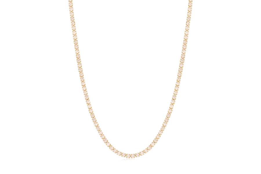 GARGANTILHA BANHADA EM RÓDIO BRANCO, PONTO DE LUZ 4mm, ELO VENEZIANA 0,80mm, 40cm COMPRIMENTO, EXTENSOR 5cm COMPRIMENTO, CRAVAÇÃO INGLESA