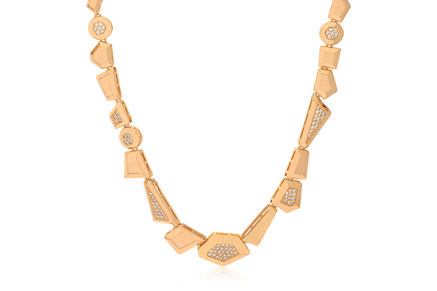 GARGANTILHA BANHADA EM OURO, ARO MEIO LISO E MEIO CRAVEJADO, 12,50cm DIÂMETRO, ARO REDONDO 5mm ESPESSURA