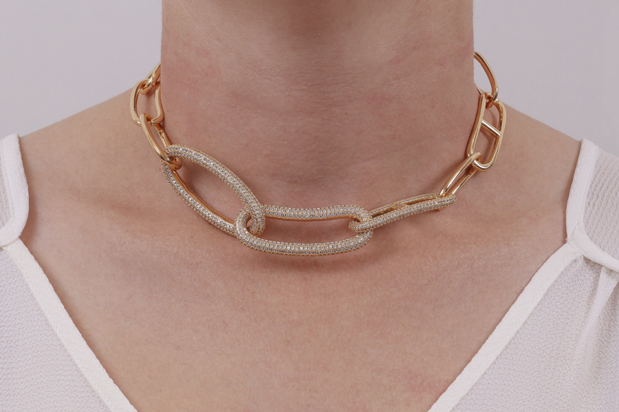 CHOKER EM PRATA, CORRENTE ELO CADEADO ALONGADO 3,60mm LARGURA E 1mm ESPESSURA, 37cm COMPRIMENTO