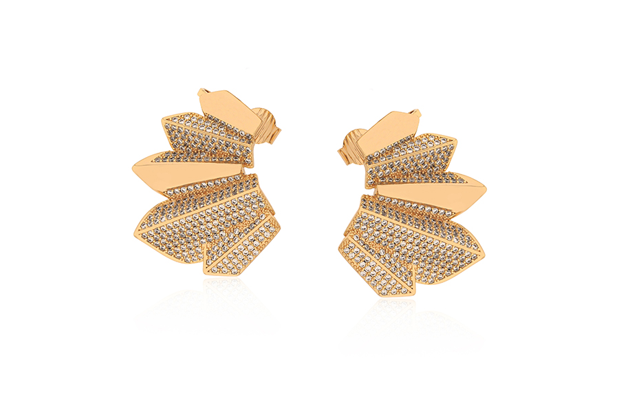 BRINCO BANHADO EM OURO, BASE CRISTAL TRAPÉZIO 11mm E CRISTAL RETANGULAR 19mm ALTURA