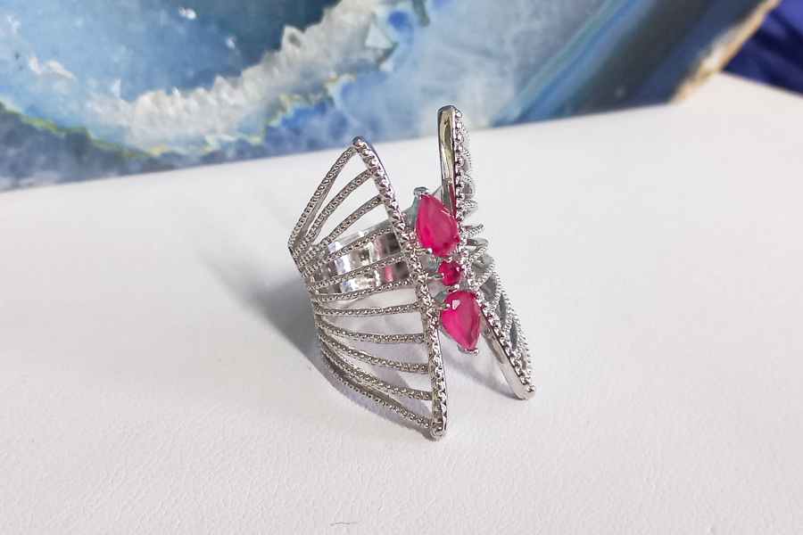 ANEL BANHADO EM RÓDIO BRANCO, 12mm LARGURA