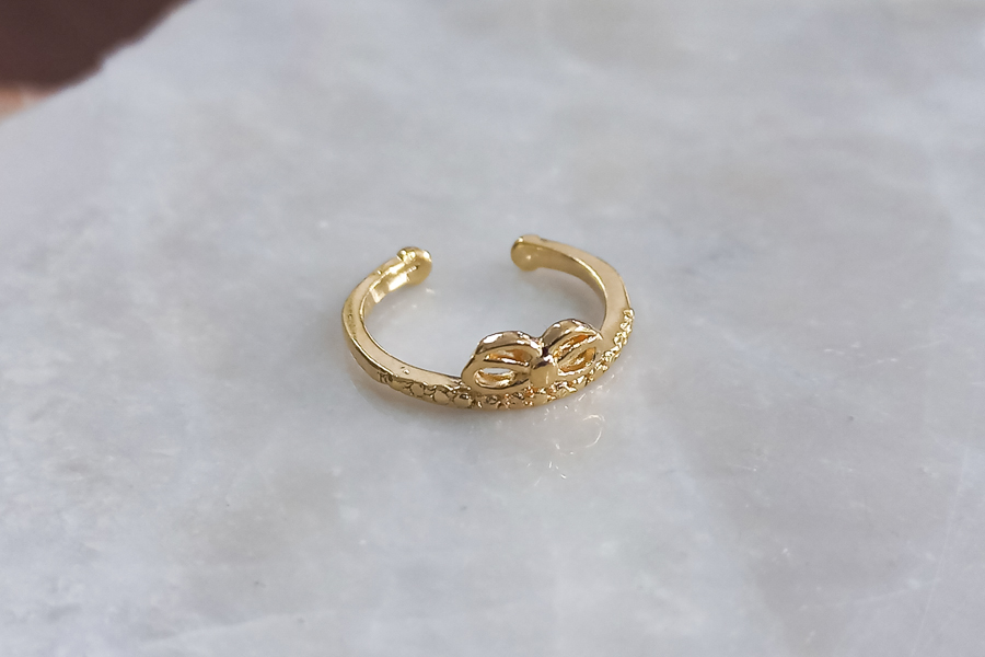 ANEL BANHADO EM OURO, FLOR, 17mm LARGURA