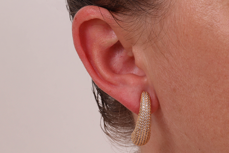 BRINCO EM PRATA, ZIRCÔNIA OVAL COM BORDAS CRAVEJADAS, 9mm ALTURA