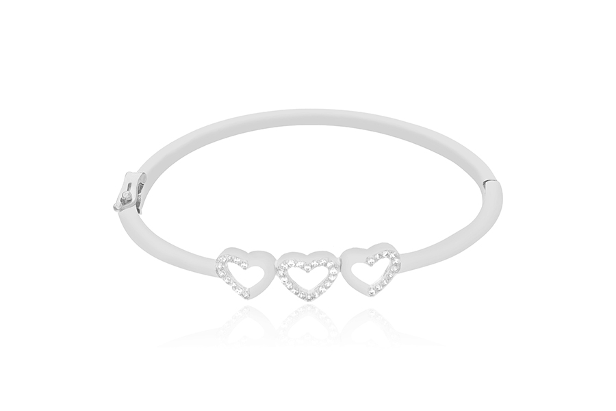 BRACELETE BANHADO EM RÓDIO BRANCO, CORAÇÃO 6,80mm DIÂMETRO, 5mm LARGURA, PARA ZIRCÔNIA BRANCA OU COLORIDA