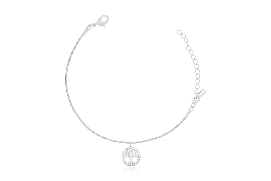 PULSEIRA BANHADA EM RÓDIO BRANCO, ELO PORTUGUÊS 3mm, 16cm COMPRIMENTO E PINGENTE ''FOREVER AND ALWAYS'' 17,50mm DIÂMETRO