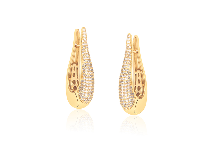 BRINCO BANHADO EM OURO, 24mm ALTURA, 9,50mm LARGURA E ZIRCÔNIA 8mm, PARA TODAS AS CORES