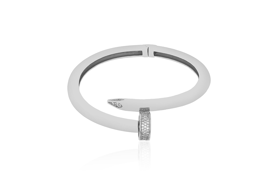 BRACELETE BANHADO EM RÓDIO BRANCO, CORAÇÃO 6,80mm DIÂMETRO, 5mm LARGURA, PARA ZIRCÔNIA BRANCA OU COLORIDA