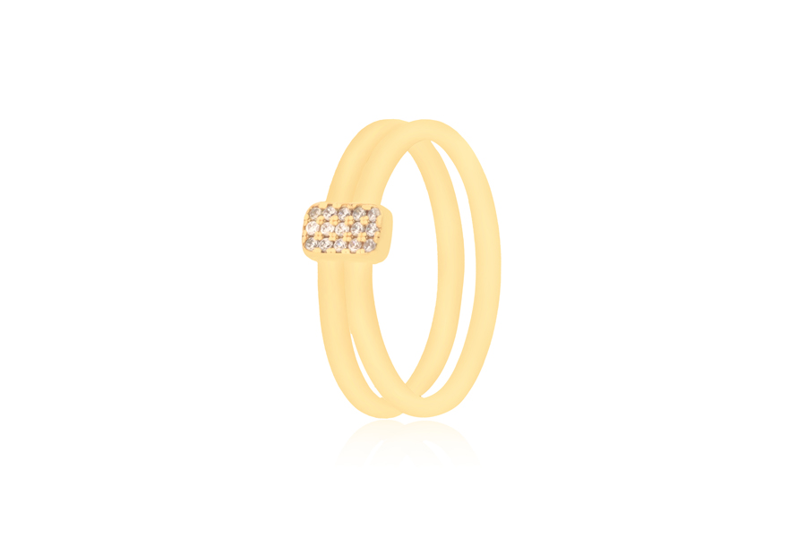 ANEL BANHADO EM OURO, APARADOR DUPLO COM 2 FILEIRAS DE ZIRCÔNIAS CADA