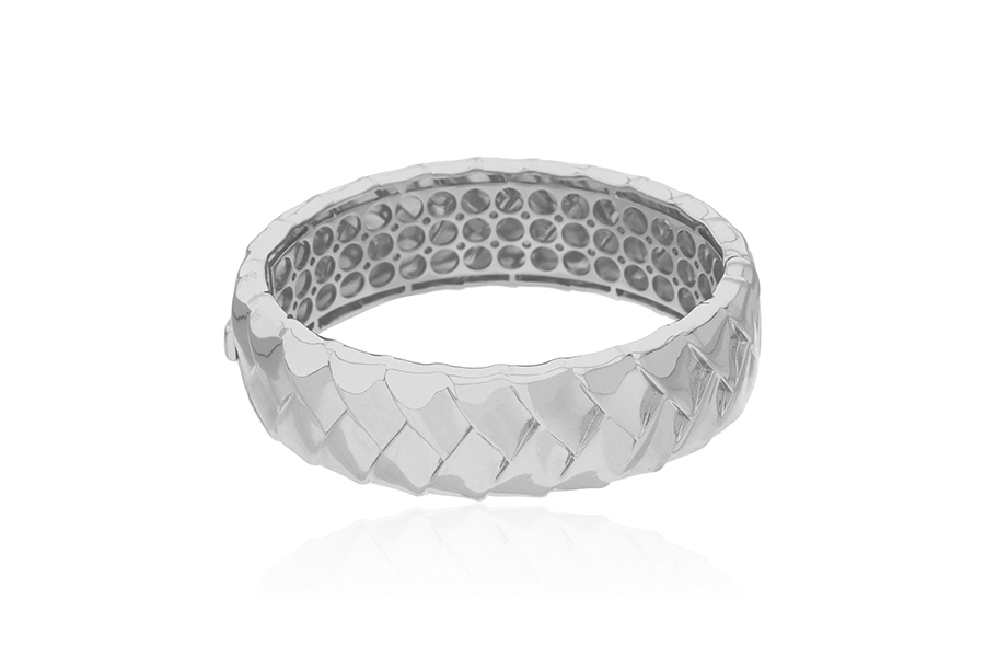 BRACELETE BANHADO EM RÓDIO BRANCO, DUAS FILEIRAS DE ZIRCÔNIAS NA FRENTE E ATRÁS