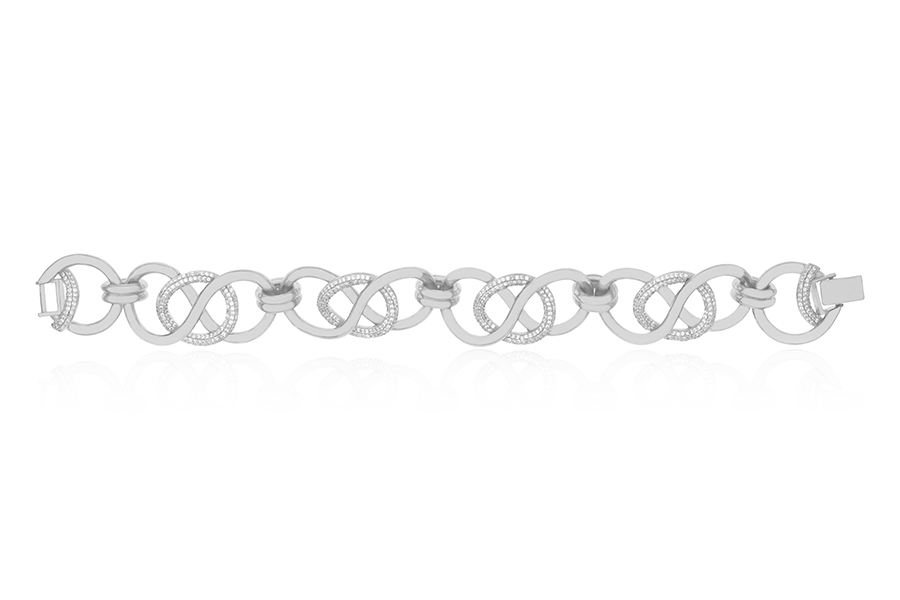 BRACELETE BANHADO EM RÓDIO BRANCO, DUAS FILEIRAS DE ZIRCÔNIAS NA FRENTE E ATRÁS