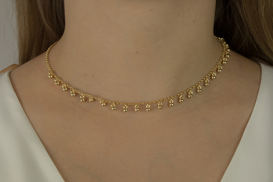 GARGANTILHA BANHADA EM OURO, OLHO GREGO 11mm DIÂMETRO, ELO VENEZIANA 0,80mm, 40cm COMPRIMENTO
