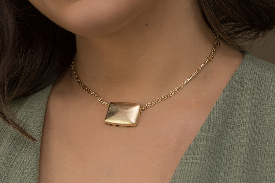 GARGANTILHA BANHADA EM OURO, ELO 2,20mm, 80cm COMPRIMENTO, PONTO DE LUZ E RELICÁRIO CORAÇÃO 13,50mm LARGURA