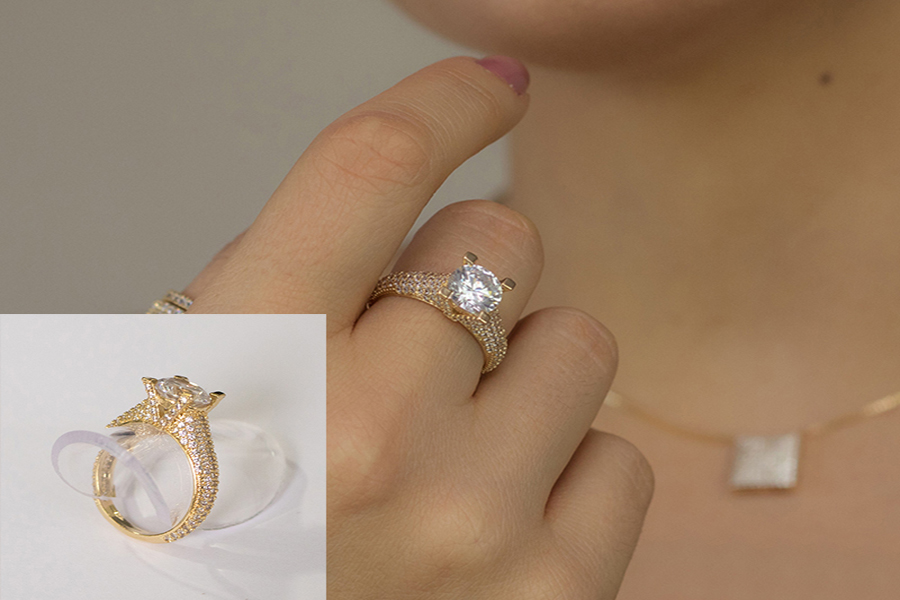 ANEL BANHADO EM OURO, COM 130 ZIRCÔNIAS