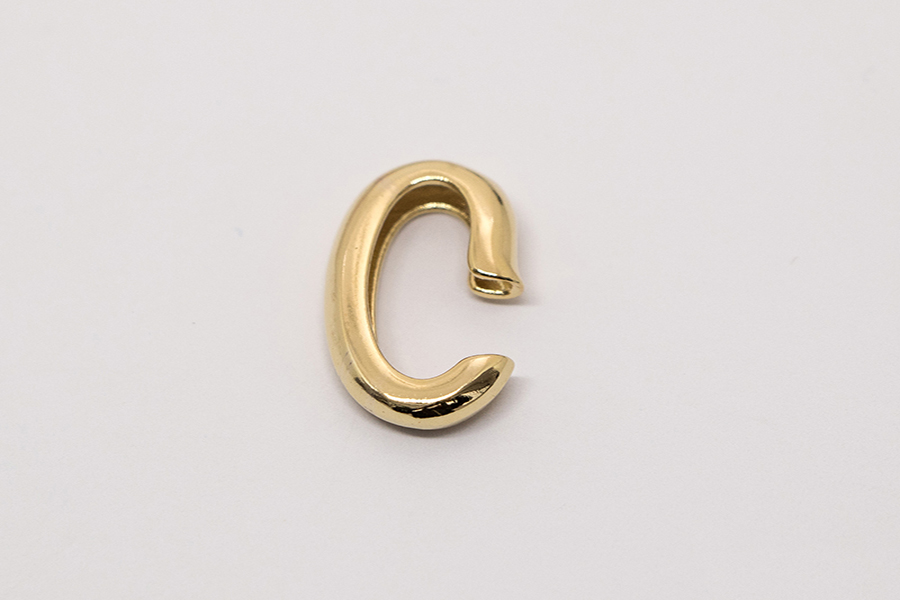 PINGENTE BANHADO EM OURO, LETRA C, 53mm ALTURA, BASE CRAVEJADA