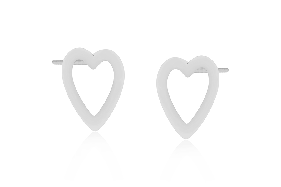 BRINCO EM PRATA, ZIRCÔNIA CORAÇÃO COM BORDAS CRAVEJADAS, 9mm ALTURA