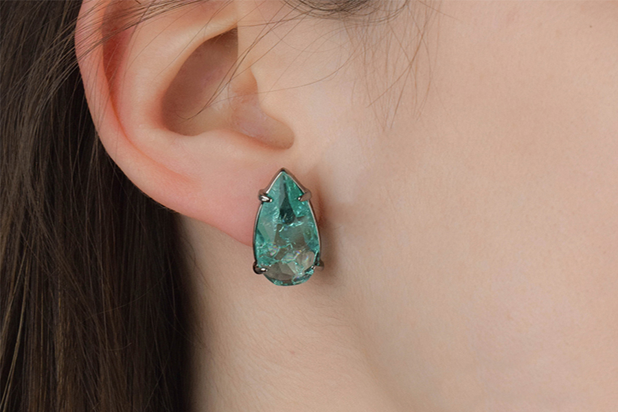 BRINCO EM PRATA, ZIRCÔNIA OVAL, CRAVEJADO NA BORDA
