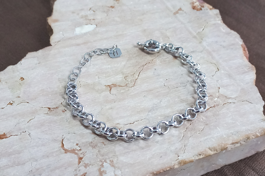 PULSEIRA BANHADA EM RÓDIO BRANCO, INFANTIL, ELO PORTUGUÊS 2,50mm, 14cm COMPRIMENTO, EXTENSOR 3cm COMPRIMENTO E ÁRVORE DA VIDA 17mm DIÂMETRO