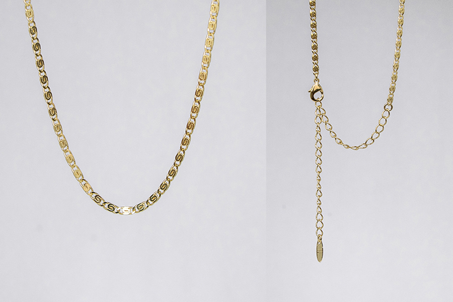 CORRENTE BANHADA EM OURO, ELO CORDA 3mm, 45cm COMPRIMENTO, EXTENSOR 5cm COMPRIMENTO E PESO 12,20g