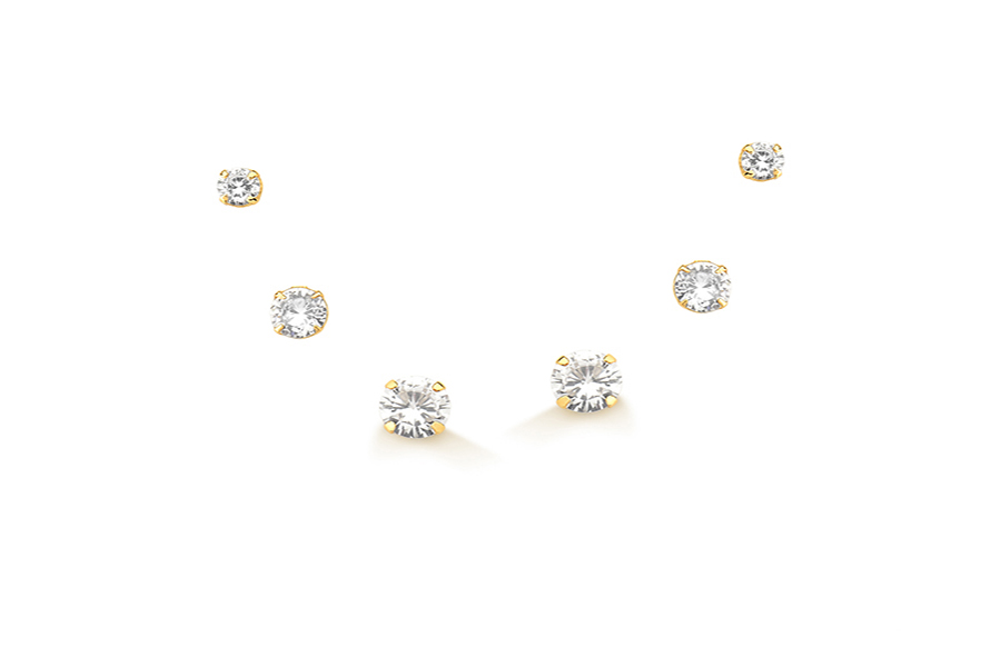 CONJUNTO BANHADO EM OURO, TRIO DE BRINCOS QUADRADO 7mm COM ZIRÔNIA, LISO 8mm E LISO 6,50mm
