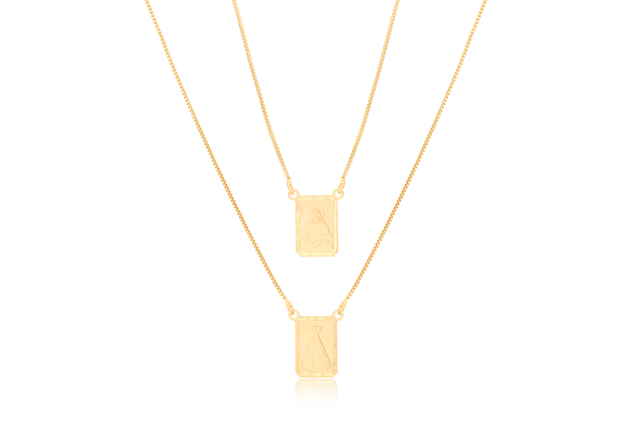 GARGANTILHA BANHADA EM OURO, NOSSA SENHORA DE CARAVAGGIO OVAL 20x18mm, ELO VENEZIANA 0,80mm, 40cm COMPRIMENTO, EXTENSOR 5cm