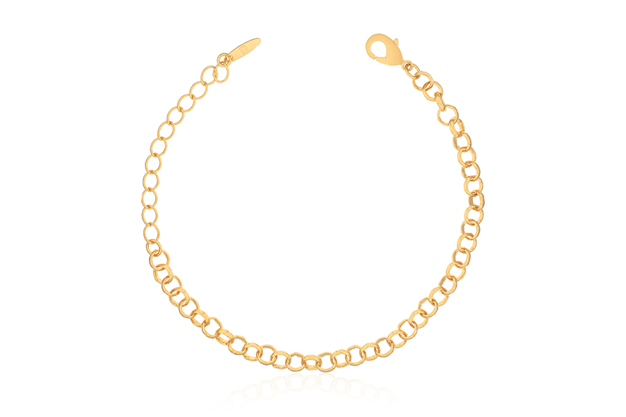 PULSEIRA BANHADA EM OURO, CORRENTE ELO CORDA 4mm, 17cm COMPRIMENTO, EXTENSOR 5cm COMPRIMENTO E PESO 9,10g