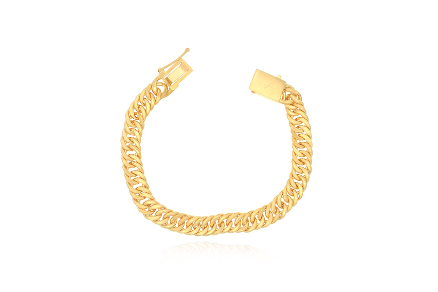 PULSEIRA BANHADA EM OURO, CORRENTE ELO CARTIER 8,50x3,30mm, 19 E 20cm COMPRIMENTO E PESO 3,30g